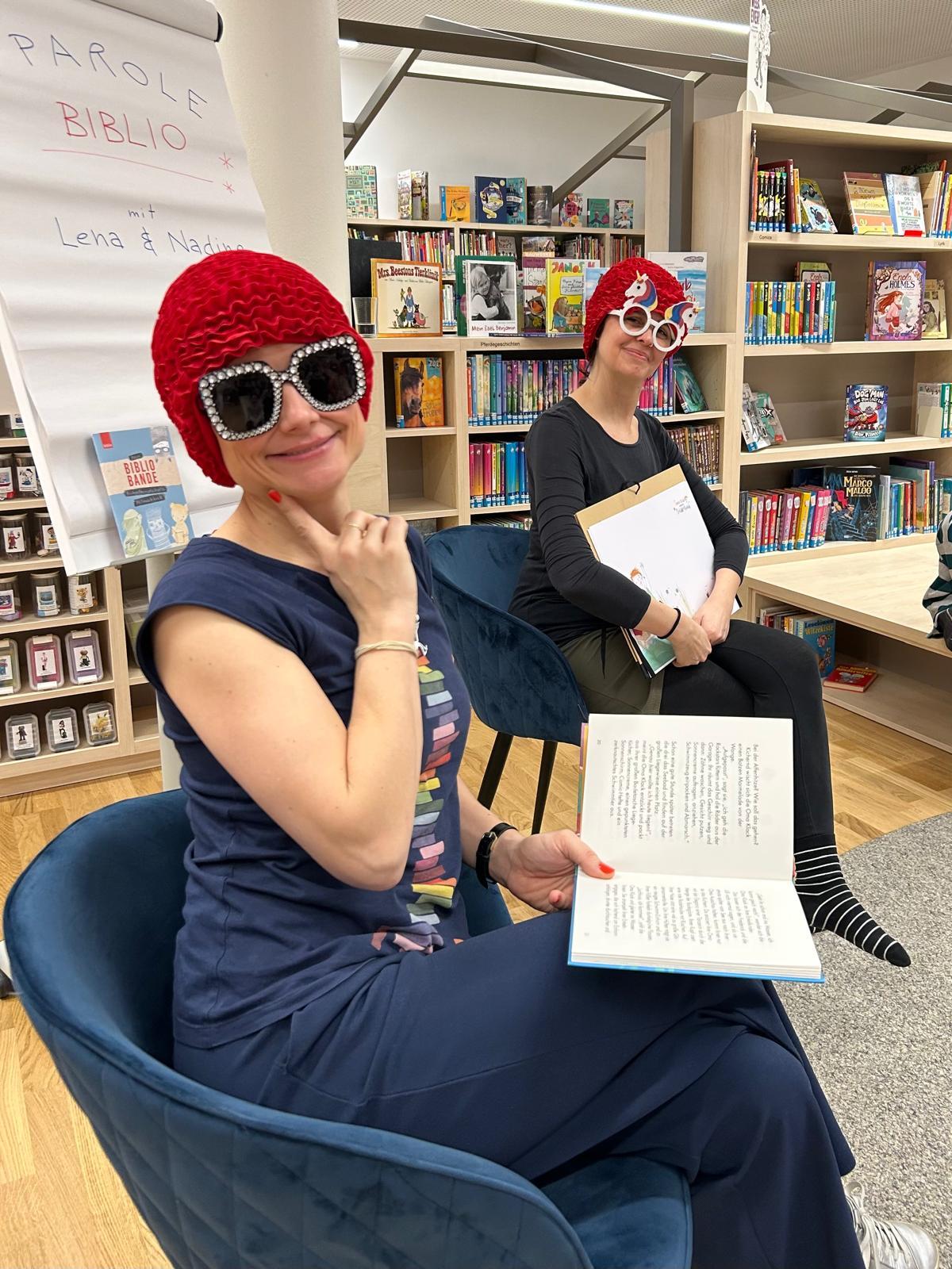 Lena Raubaum und Nadine Kappacher waren im Februar zwei Tage in der Bibliothek Hitzendorf zu Gast und lasen aus dem neuen Buch "Oma Klack macht Schabernack". Eislaufen im Sommer, Spaß-iergänge im Wald und Disco mit den Seidenhühnern "Rockstars" - es wurde viel gelacht, getanzt und gesungen :)